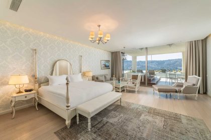 Ambiance Our 120 m² Sea view Suite Room includes King-sized bed, sofa, living room, dressing room, 2 Bathrooms, Sauna and…